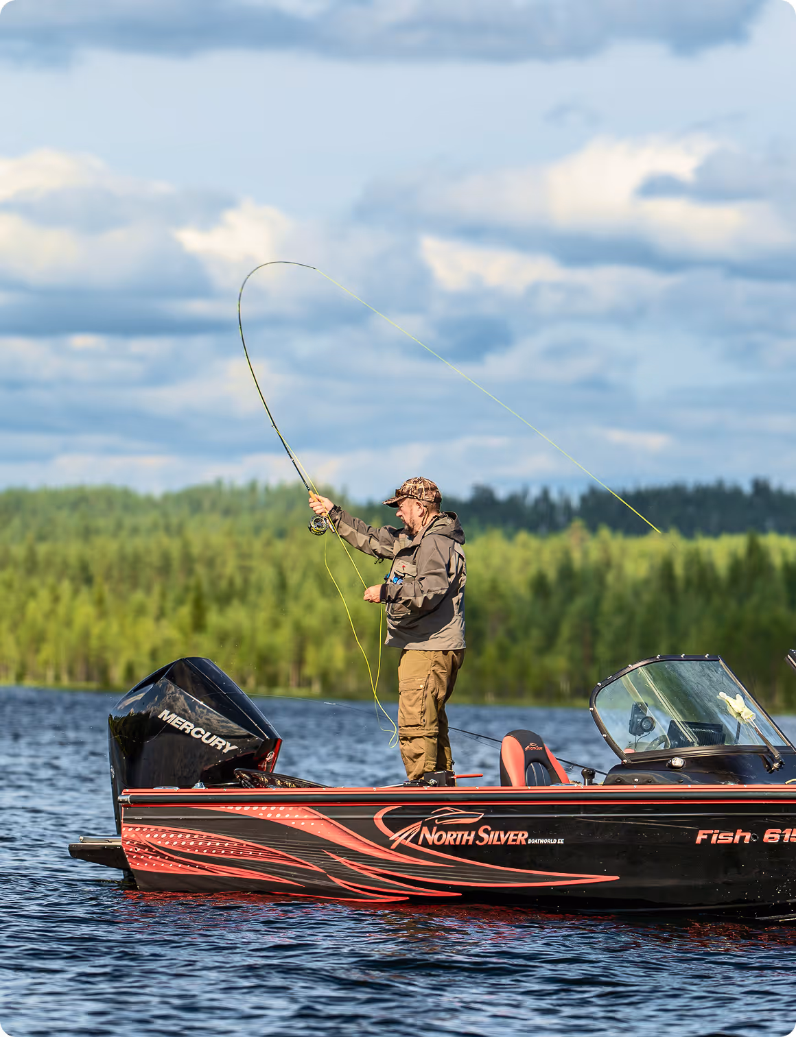 Hechte, die im Juni gerade den Laichzeit hinter sich haben, beißen aggressiv auf große Fliegen an. Eine Rute der Klasse 7–8 eignet sich ideal für das Angeln in den flachen Buchten der Seen und Flüsse Lapplands bei Sonnenuntergang.