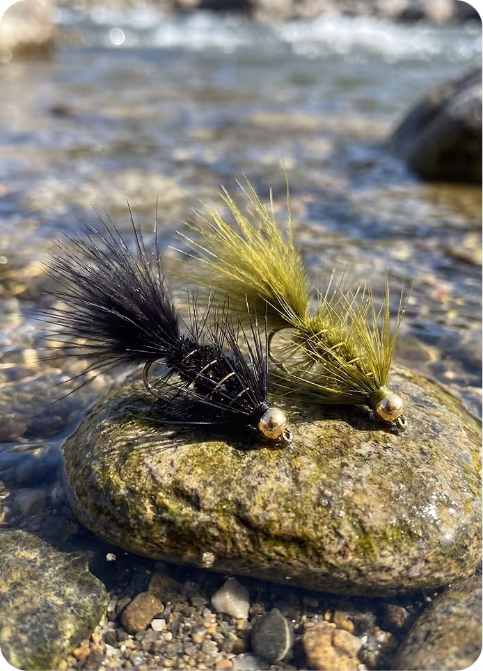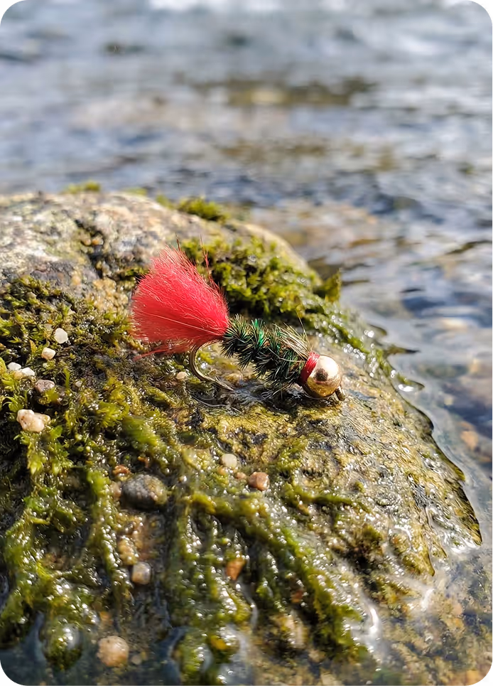 Ein nordischer Klassiker, der den Simpa (Sculpin) nachahmt. Sein Kopf aus Hirschhaar erzeugt Vibrationen, die große Bachforellen unter schweren Felsbrocken hervorlocken